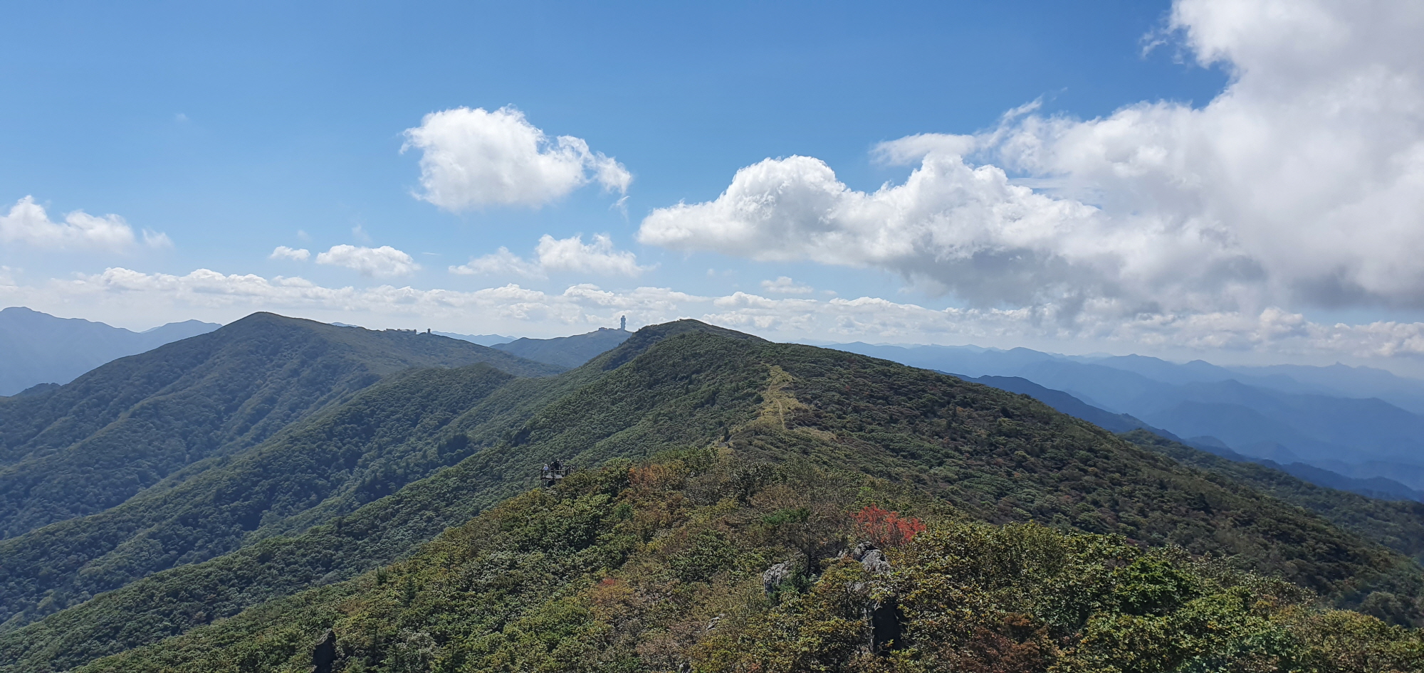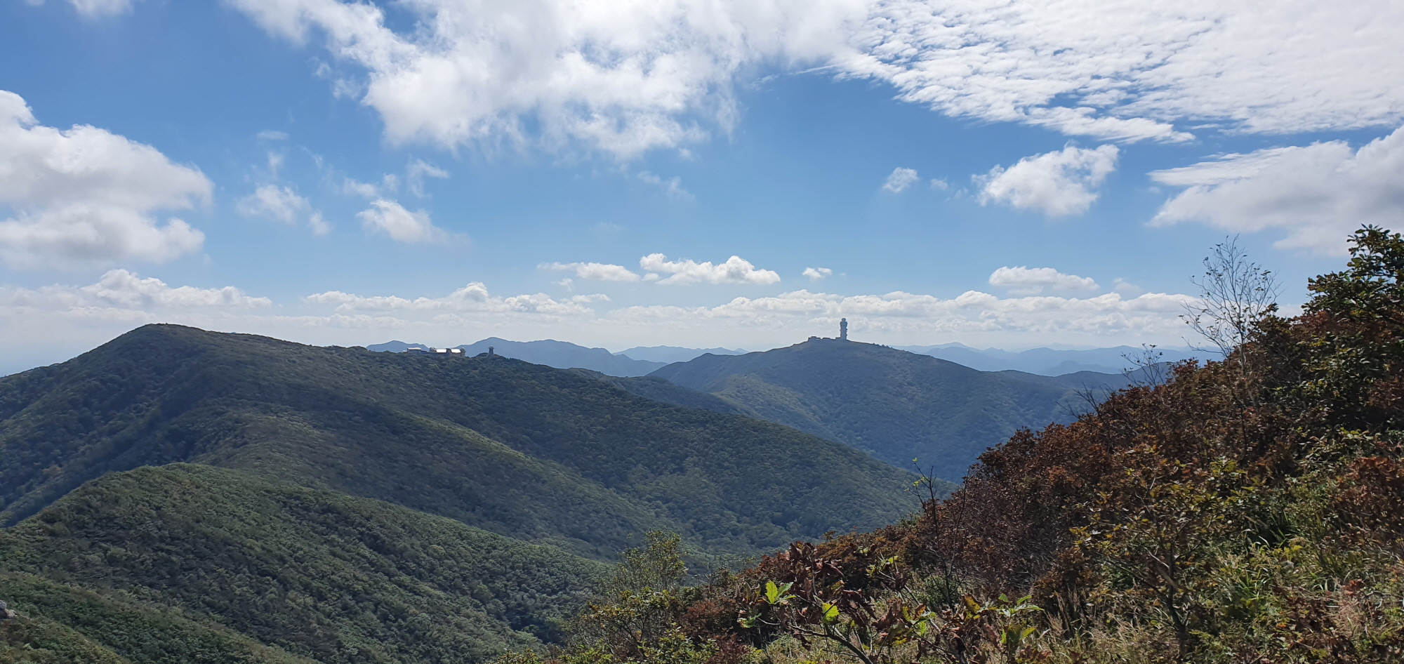 제2연화봉에 위치한 중계탑, 그리고 그 옆에는 대피소가 있다. 예전에는 저 능선을 따라 대피소로 들어갈 수 있었는데 이제는 그 길을 없애버렸다. 대피소로 가려면 돌아서 한참 위로 올라가야 한다.