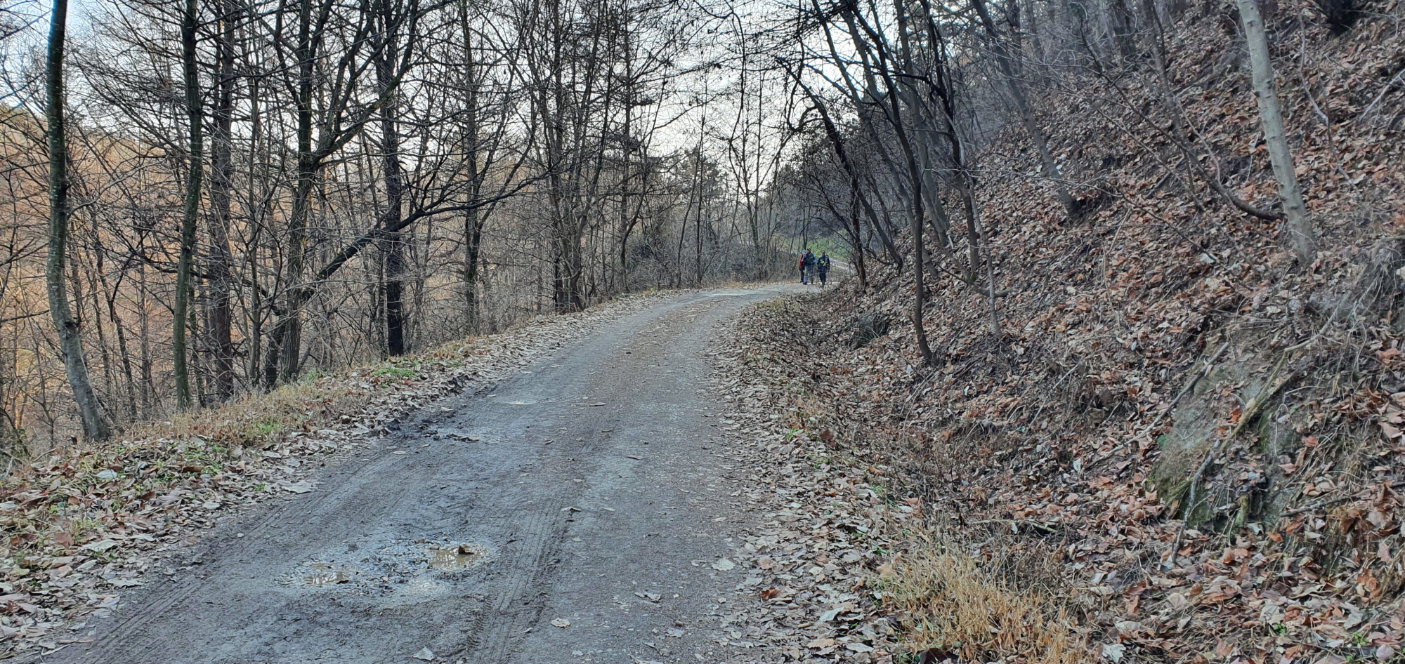 갈령삼거리에서 비재까지, 하산하는 구간은 다소 거칠고 낙엽이 짙게 깔려 미끄럽다.